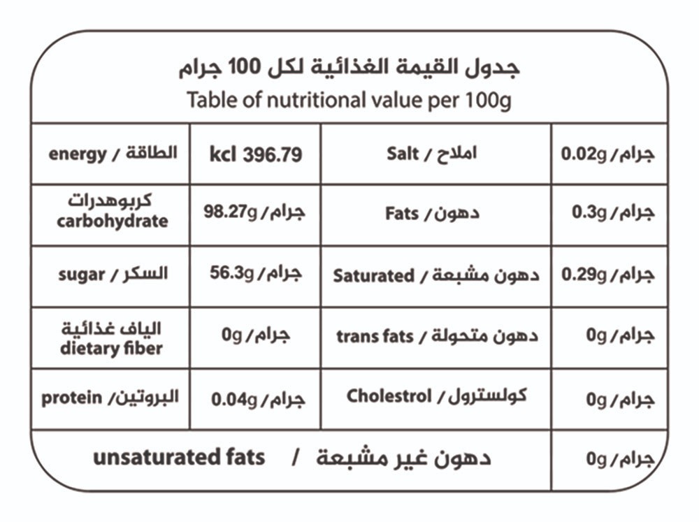 خالي من العناصر المعدلة وراثيا والألوان الصناعية.